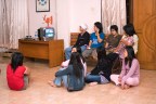 factory workers watching tv